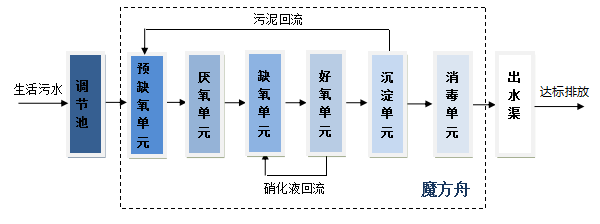 魔方舟泥膜耦合脫氮除磷一體化污水處理設備采用泥膜耦合A3O工藝,具有故障點少、工藝穩(wěn)定性高,多點精準氣提控制、低能耗,出水水質穩(wěn)定,可無人值守的特點。